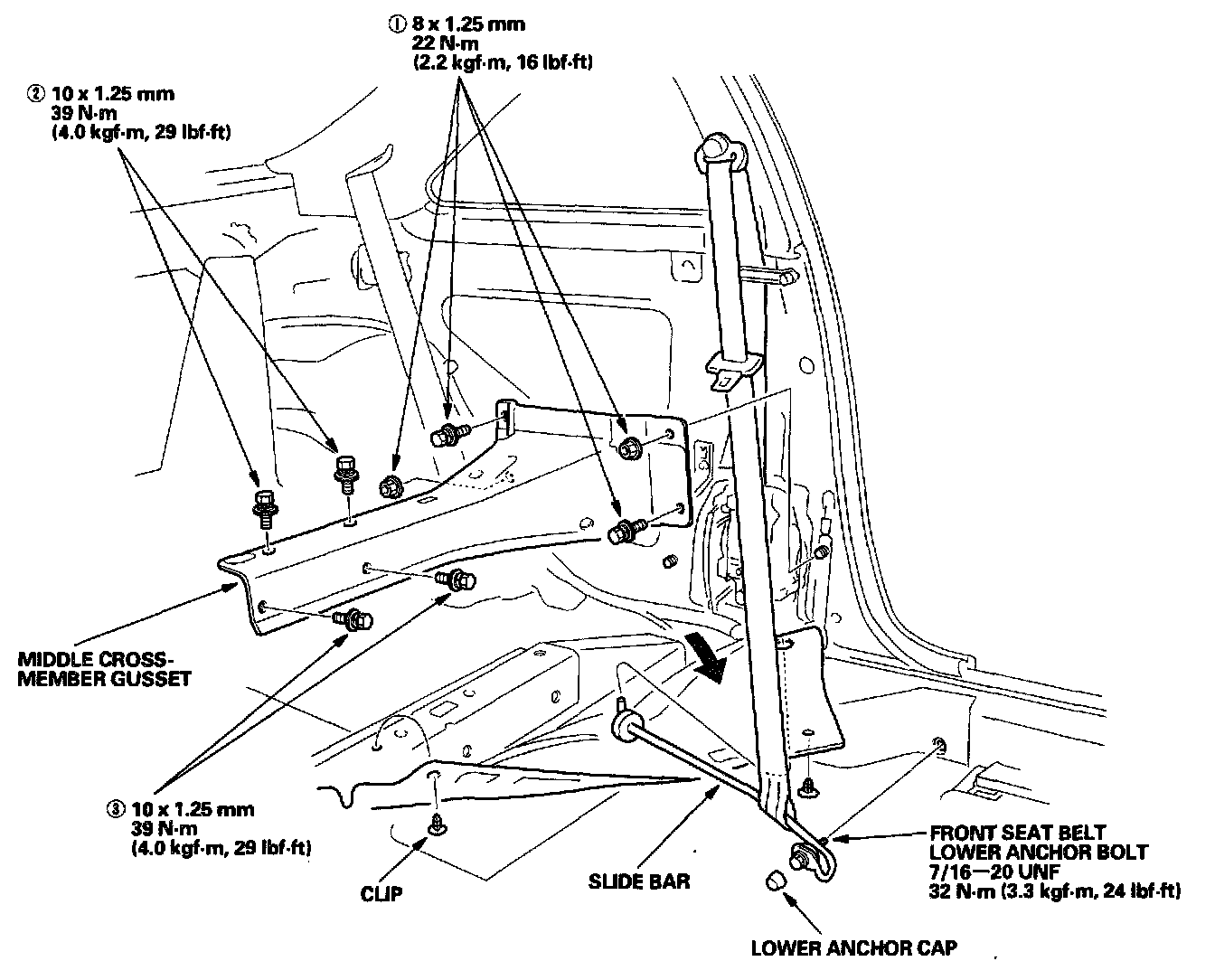 Middle Cross-member Gusset ReplacementSRS components are located in this area. Review the SRS component locations and precautions and procedures before performing repairs or service.