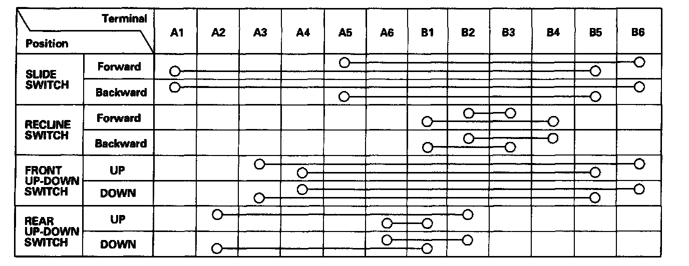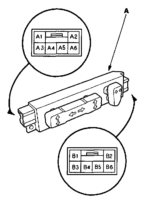 2. Disconnect the 6P connectors from the power seat adjustment switch (A).