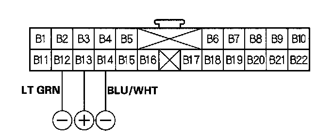 11. Apply battery power to the B13 terminal and ground the B12 [or B14] terminal.