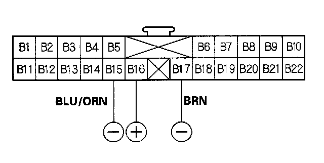 12. Apply battery power to the B16 terminal and ground the B15 [or B17] terminal.