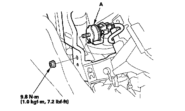 2. Remove the lateral acceleration sensor (A) from the left lower side with the connector connected.