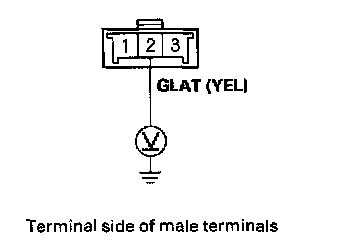 4. Measure the voltage between the lateral acceleration sensor 3P connector terminal No. 2 and body ground.