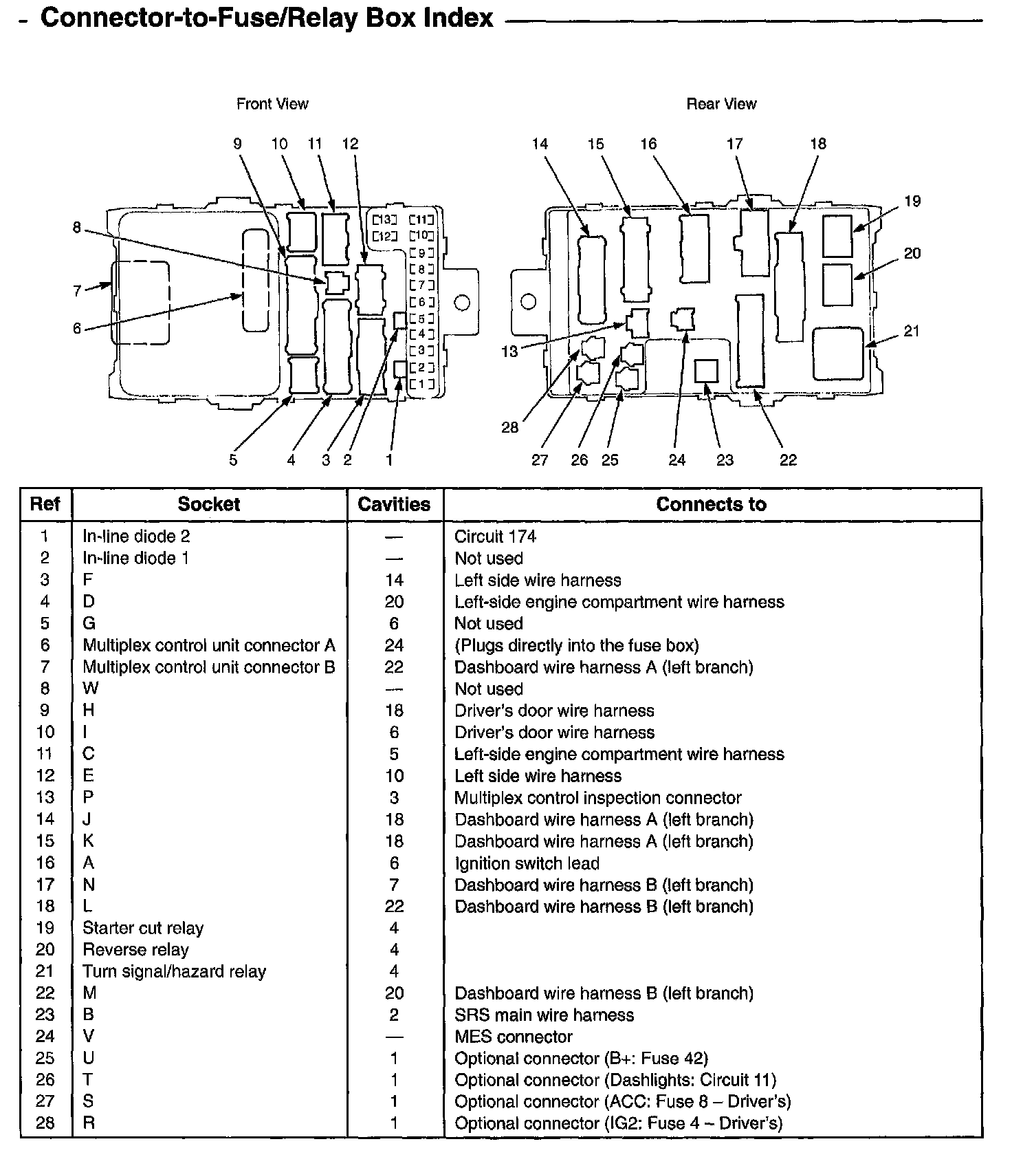 Connector-to-Fuse/Relay Box Index Image 6-1: