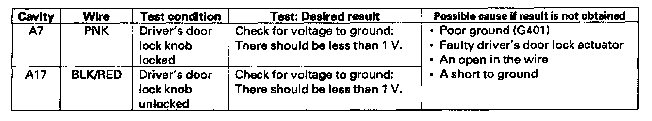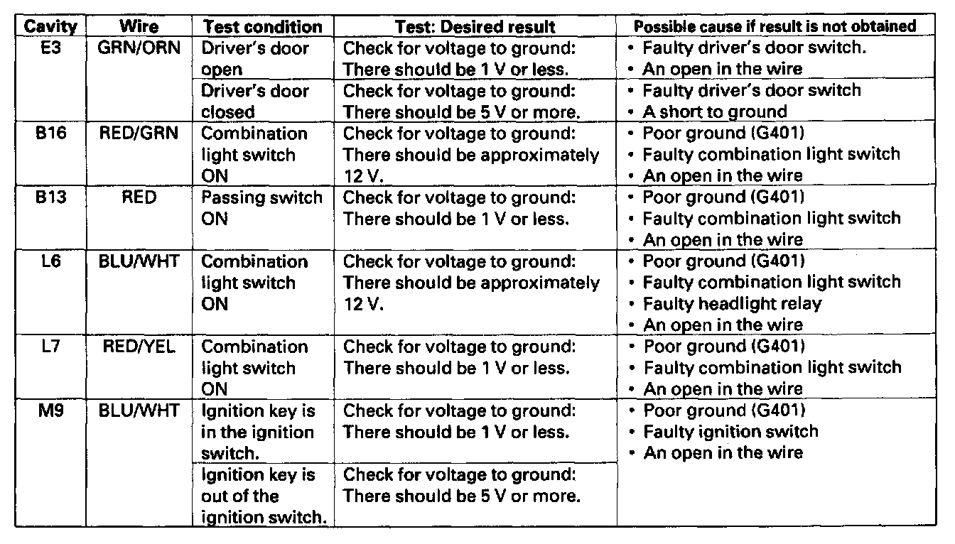 8. Reconnect the connector to the door multiplex control unit, and make these input tests.