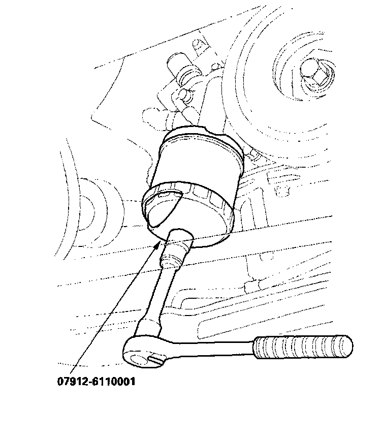 4. After the rubber seal seats, tighten the oil filter clockwise with the special tool.