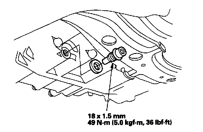 3. Remove the ATF filler bolt and drain plug, and drain the automatic transmission fluid (ATF).