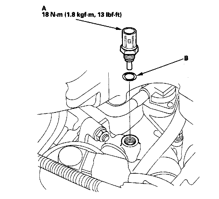 Disconnect the ECT sensor connector, then remove the ECT sensor (A).