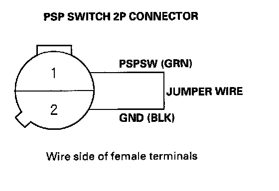9. At the harness side, connect the PSP switch 2P connector terminals No.1 and No.2 with a jumper wire.