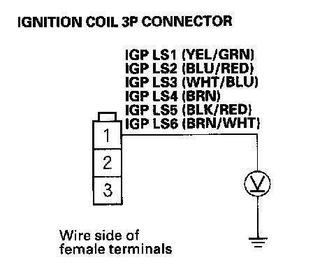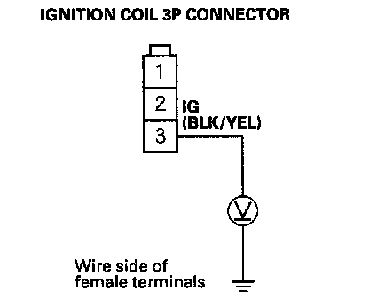 3. Measure the voltage at the No.3 terminal of each ignition coil 3P connector with the ignition switch ON (II).