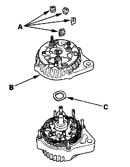 10. Remove the four insulators (A) rear housing (B) and washer(C).
