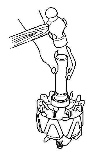 14. With a hammer and commercially available tools shown, install a new rear bearing in the rotor shaft.