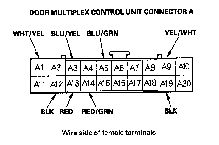 5. With the door multiplex control unit reconnected, make these input tests at the connectors.