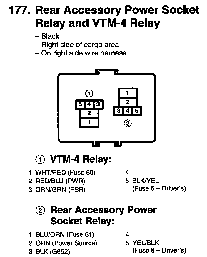 177. Rear Accessory Power Socket Relay And VTM-4 Relay: