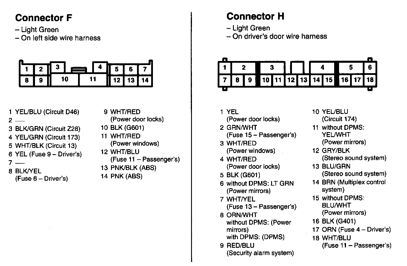 282. Under-dash Fuse/Relay Box, Driver's (Connectors F, H):