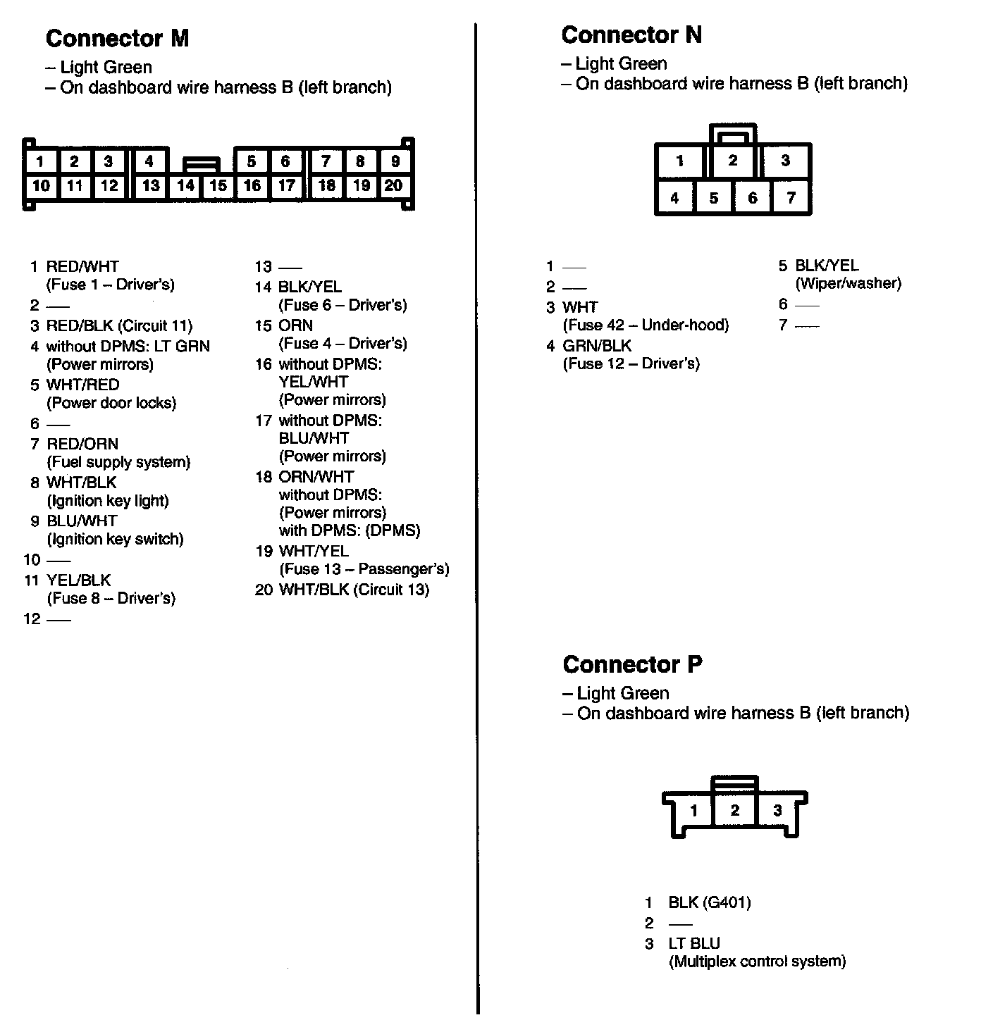 282. Under-dash Fuse/Relay Box, Driver's (Connectors M, N, P):