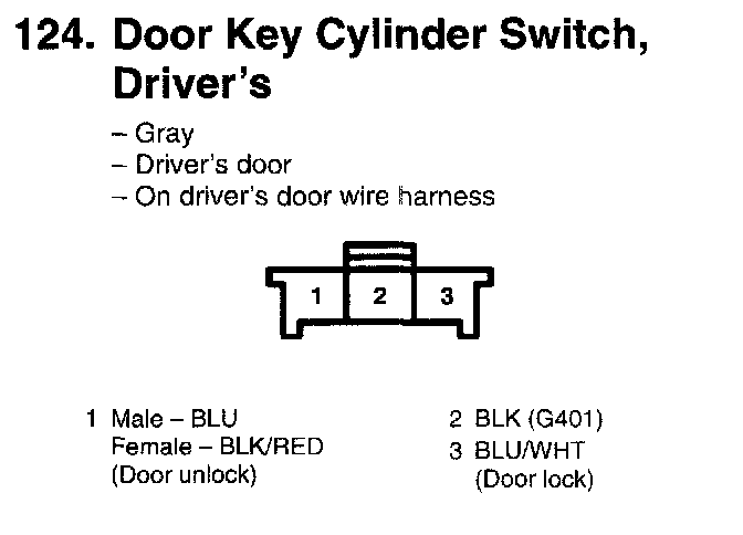 124. Door Key Cylinder Switch, Driver's: