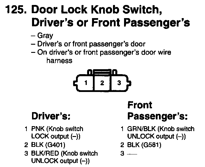 125. Door Lock Knob Switch, Driver's Or Front Passenger's: