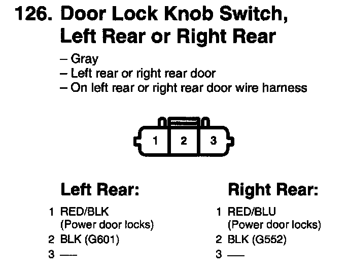 126. Door Lock Knob Switch, Left Rear Or Right Rear: