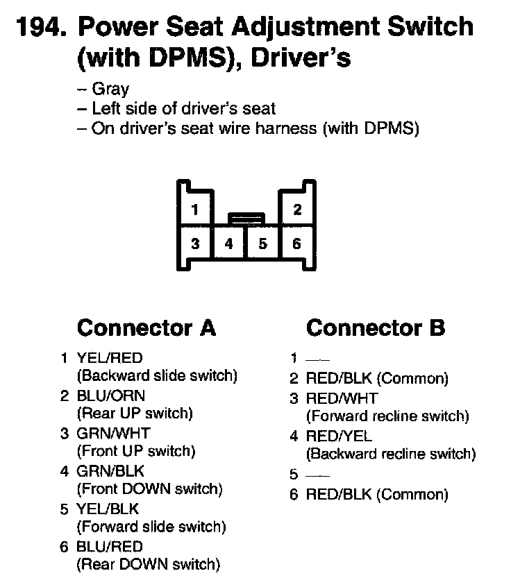 194. Power Seat Adjustment Switch (With DPMS), Driver's: