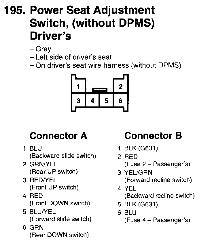 195. Power Seat Adjustment Switch, (Without DPMS) Driver's: