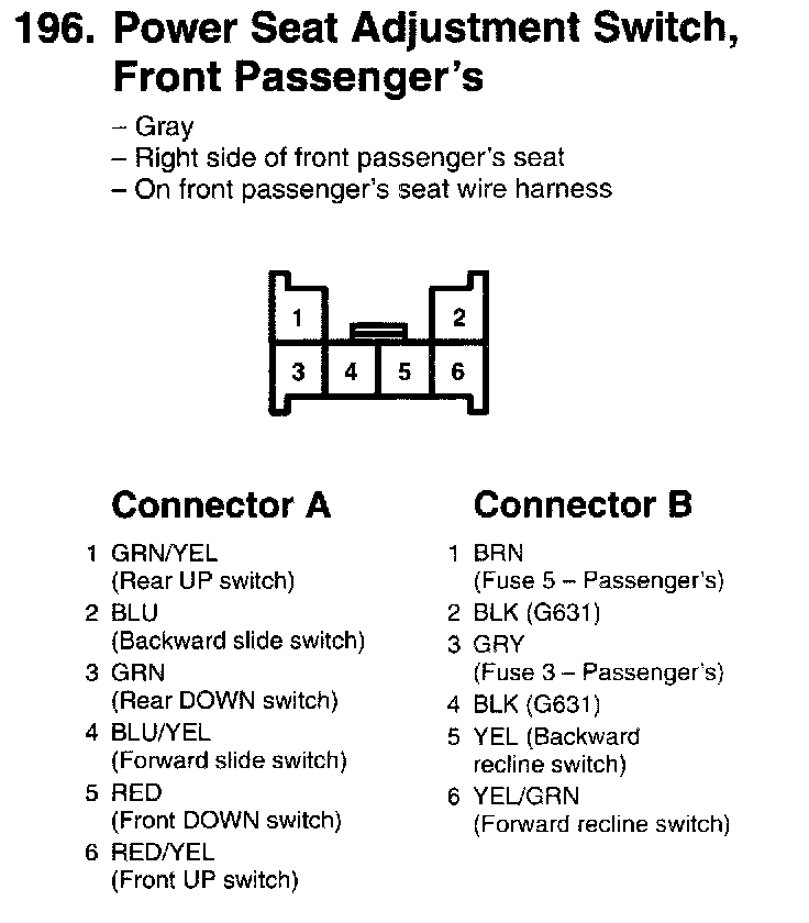 196. Power Seat Adjustment Switch, Front Passenger's: