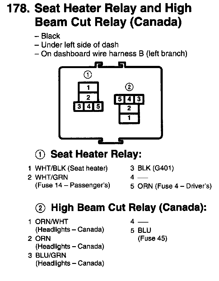 178. Seat Heater Relay And High Beam Cut Relay (Canada):