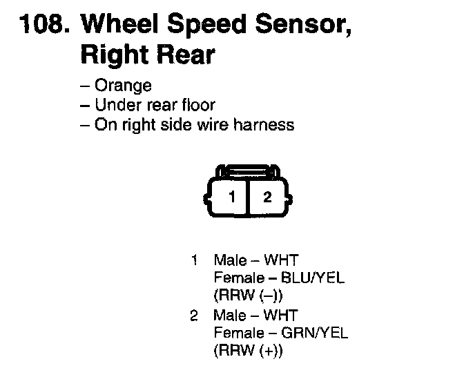 108. Wheel Speed Sensor, Right Rear: