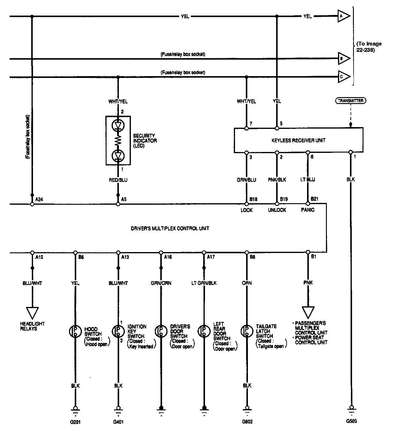 Keyless Entry/Security Alarm System - Circuit Diagram Image 22-238: