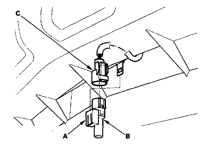 Outside Air Temperature Sensor Replacement1. Lift the tab (A) to release the lock, and remove the outside air temperature sensor (B) from the back of the front bumper beam. Disconnect the 2P connector (C) from the outside air temperature sensor.