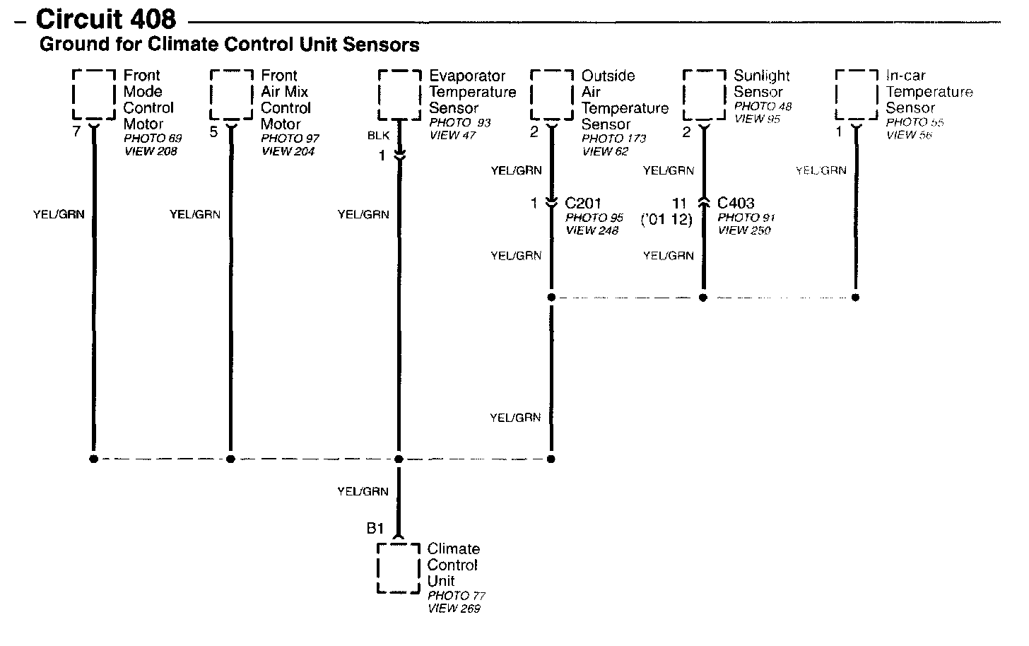Circuit 408 - Ground For Climate Control Unit Sensors Image 15-8a:
