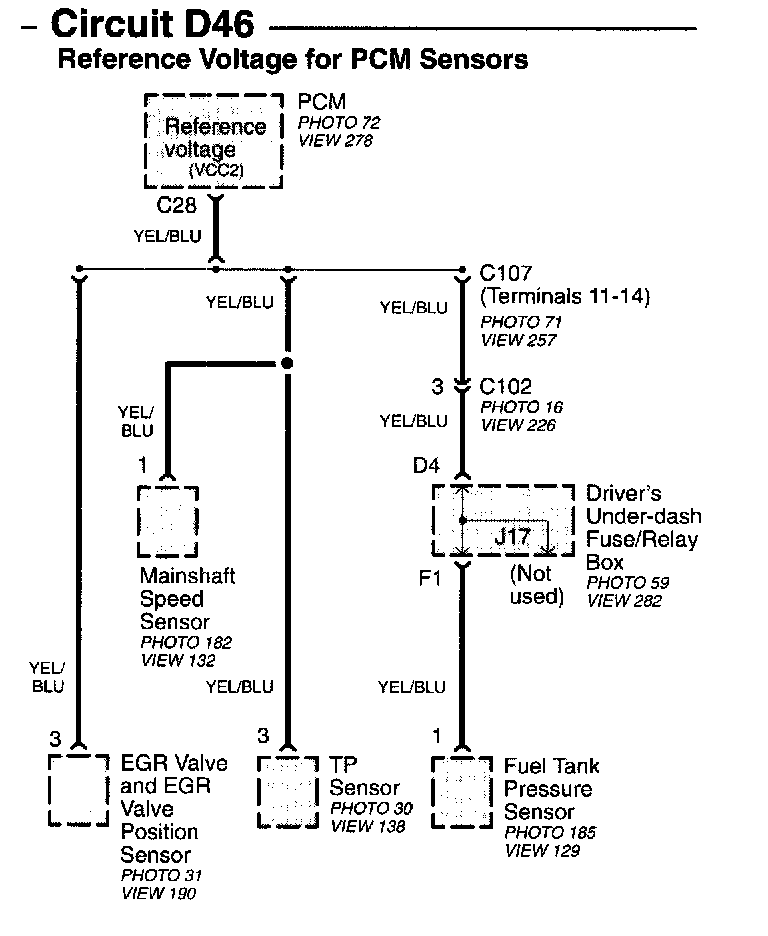 Circuit D46 - Reference Voltage For PCM Sensors Image 15-9b: