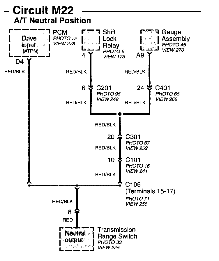 Circuit M22 - A/T Neutral Position Image 15-11d: