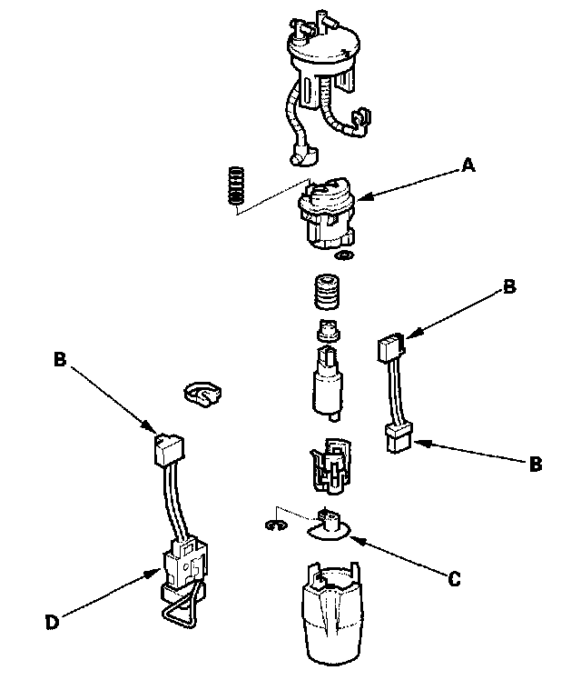 - When installing the fuel gauge sending unit (D), make sure the connection is secure and the connector is firmly locked into place. Be careful not to bend or twist it excessively.