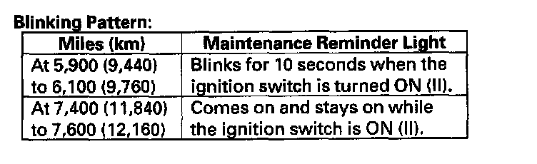 Maintenance Required Indicator Reset ProcedureBlinking Pattern: