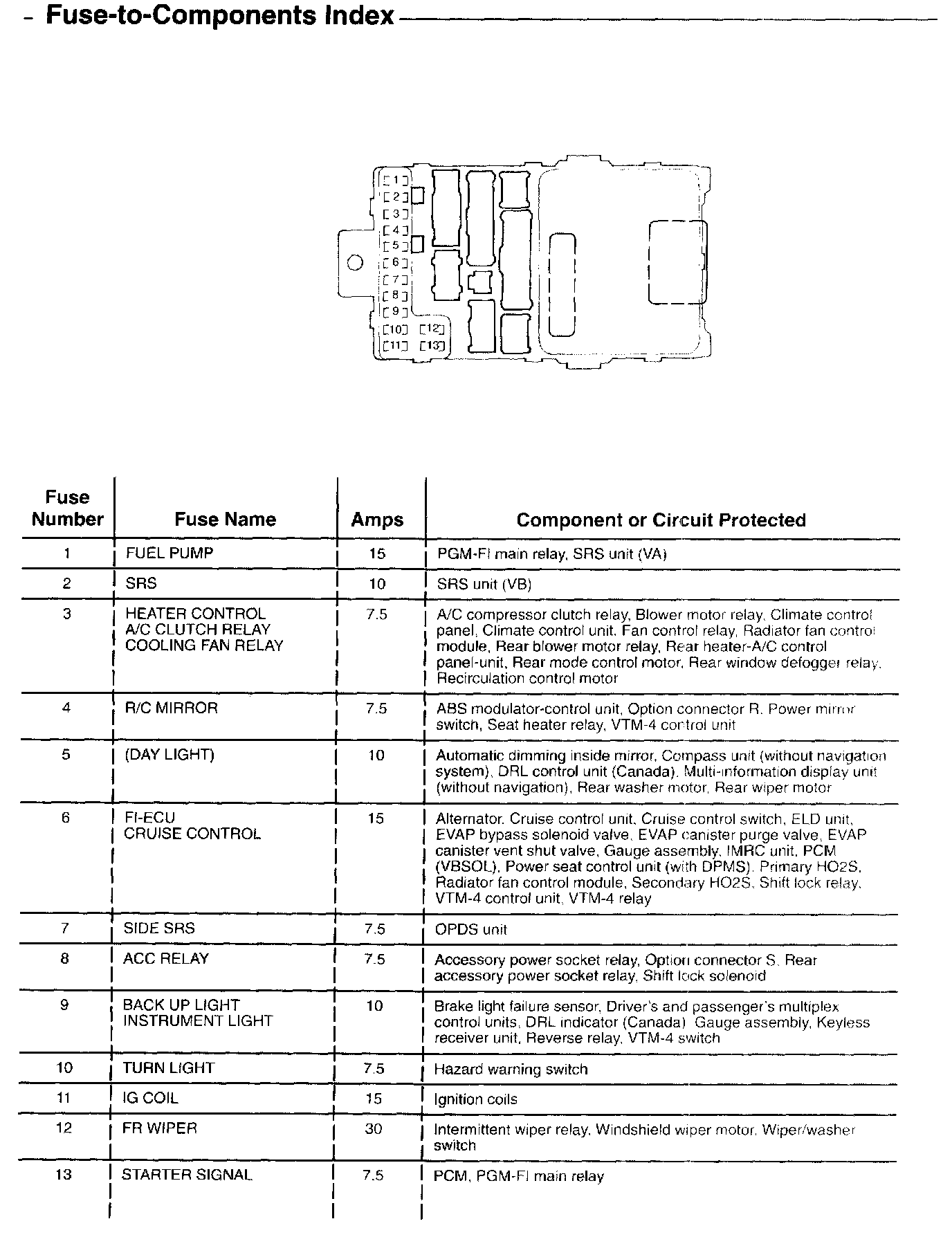 Fuse-to-Components Index
