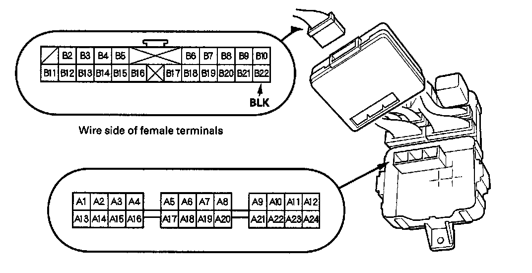 6. Inspect the connector and socket terminals to be sure they are all making good contact.