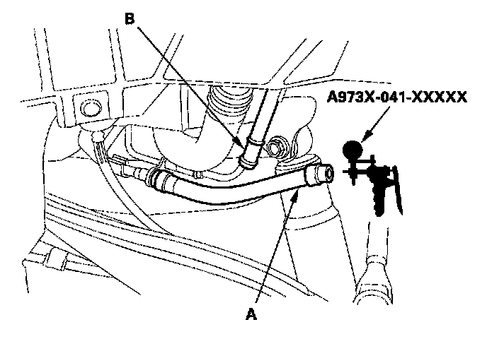 5. Apply vacuum to the fuel tank vapor recirculation tube (A).