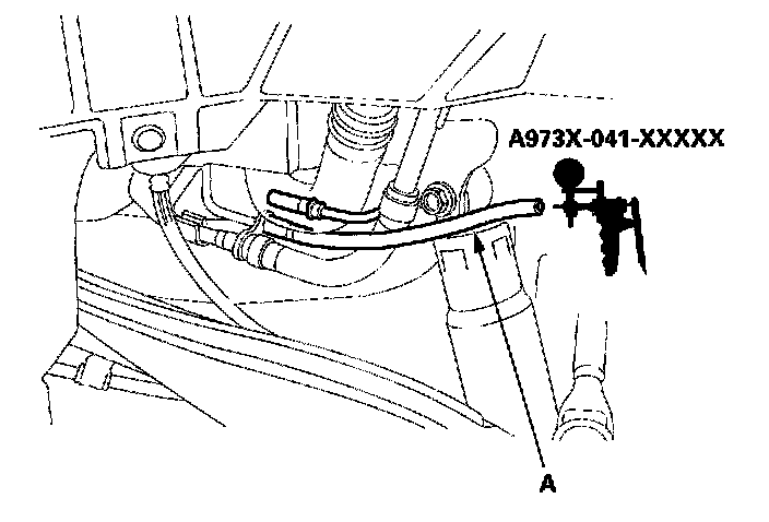 3. Disconnect the fuel tank vapor recirculation tube (A), and connect a vacuum pump to the vapor recirculation tube.
