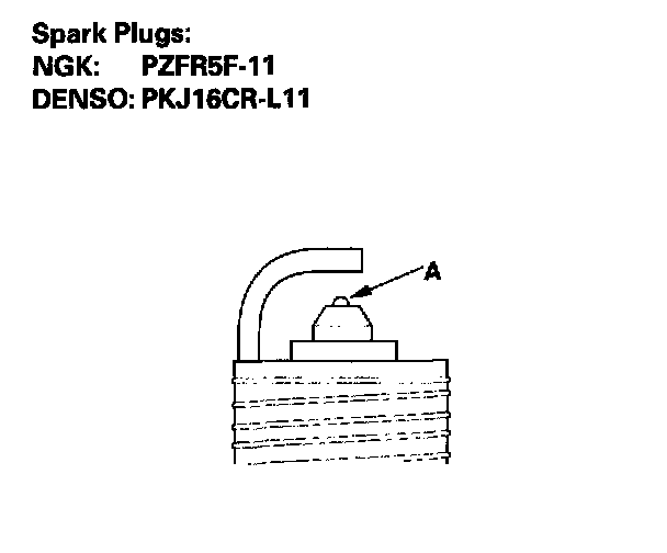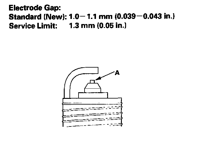 2. Do not adjust the gap of platinum tip plugs (A); replace the spark plug if the gap is out of specification.
