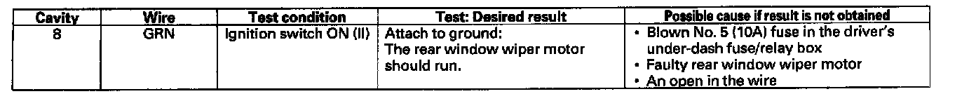 Rear Window Wiper Intermittent Control Unit Input Test1. Remove the left rear side trim panel.