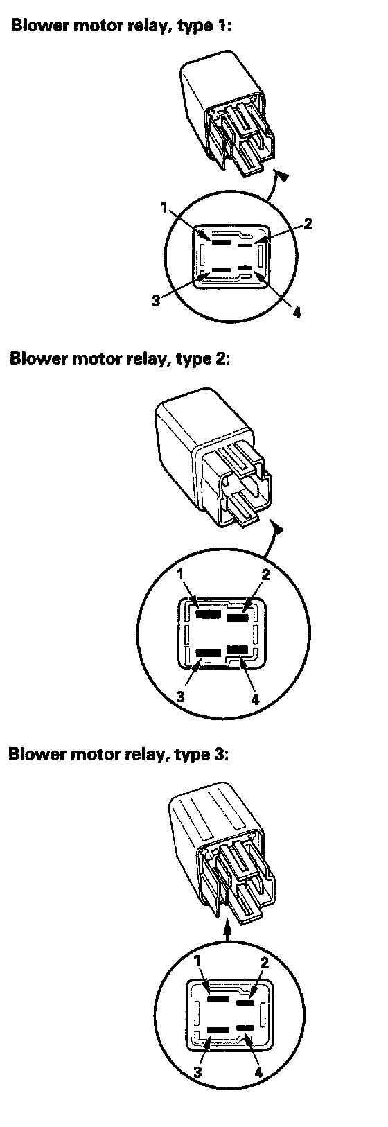Blower Motor Relay, Type 1,2,3: