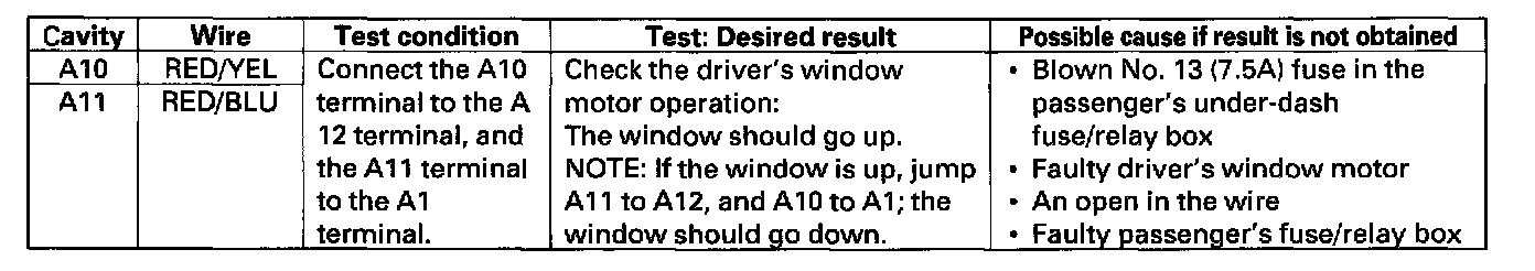 9. Reconnect the passenger's multiplex control unit to the passenger's under-dash fuse/relay box, and perform the following input tests at the appropriate connectors on the passenger's under-dash fuse/relay box.