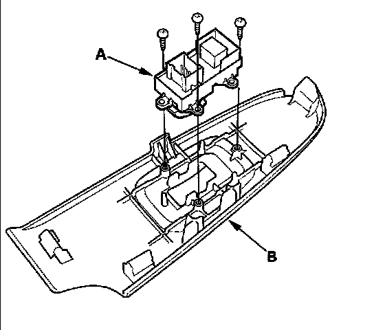 3. Remove the three mounting screws, then remove the 4 power window switch (A) from the switch trim (B).