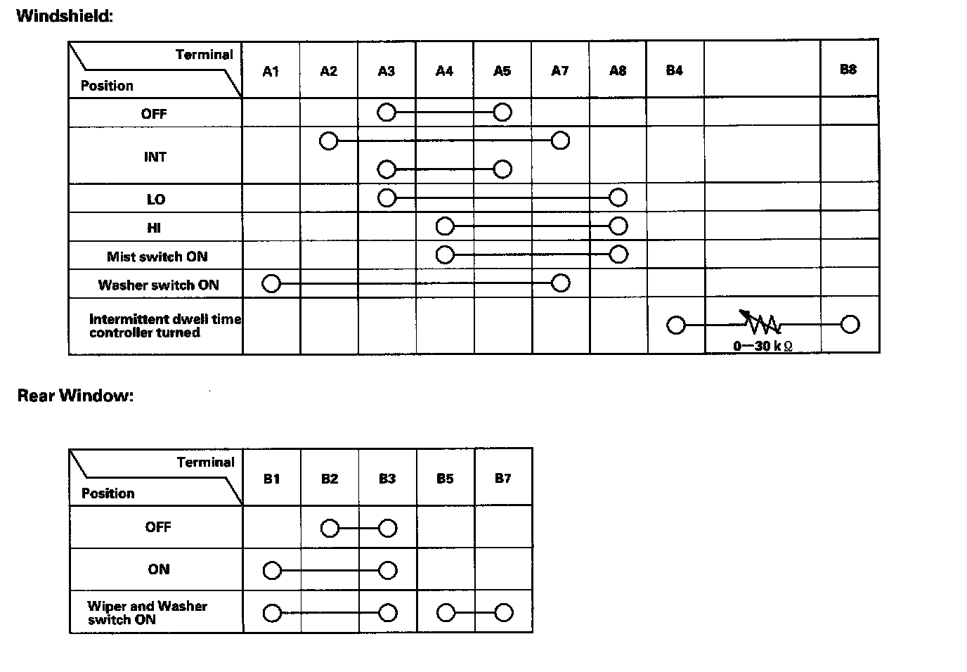 4. Check for continuity between the terminals in each switch position according to the table. If the switch fails any continuity check, replace the switch.