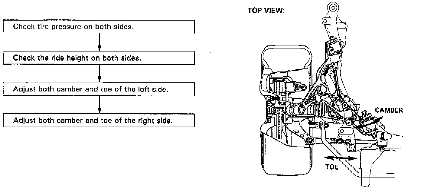 NOTE: NSX/NSX-T four wheel alignment requires the use of equipment designed specifically for four wheel independent suspensions and capable of immediate feedback.