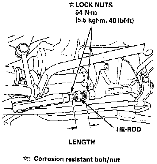 (2) If the measurement is out of specification, loosen the locknuts, and adjust the rear toe by turning the right and left tie-rods.