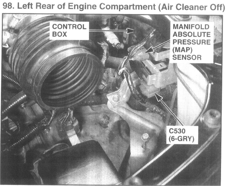 98. Left Rear of Engine Compartment (Air Cleaner Off):