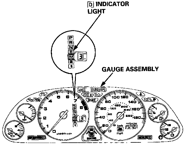 Some PGM-FI problems will also make the [D] indicator light come on. After repairing the PGM-FI system, disconnect the CLOCK fuse (7.5 A) in the under-hood fuse/relay box for more than 10 seconds to reset the TCM memory, then recheck.