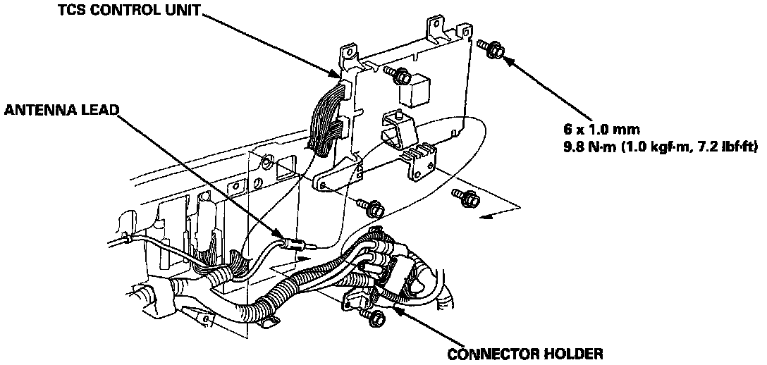2. Remove the connector holder from the TCS control unit, and disconnect the antenna lead.