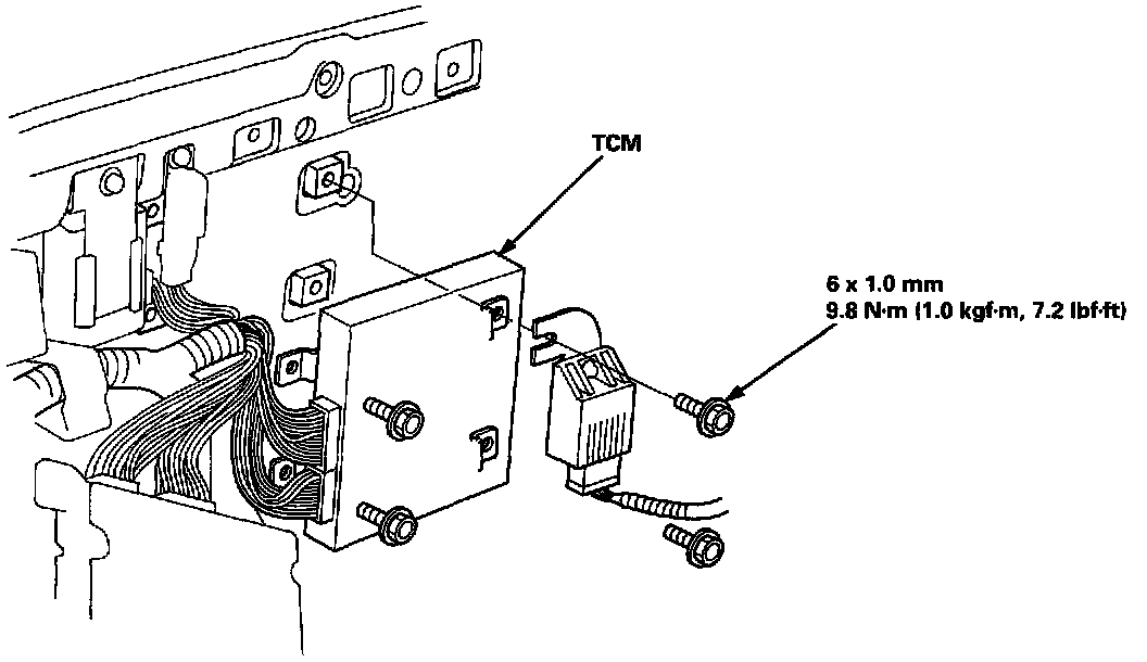 NOTE: Do not disconnect the A (26P) connector from the TCM while removing the TCM.